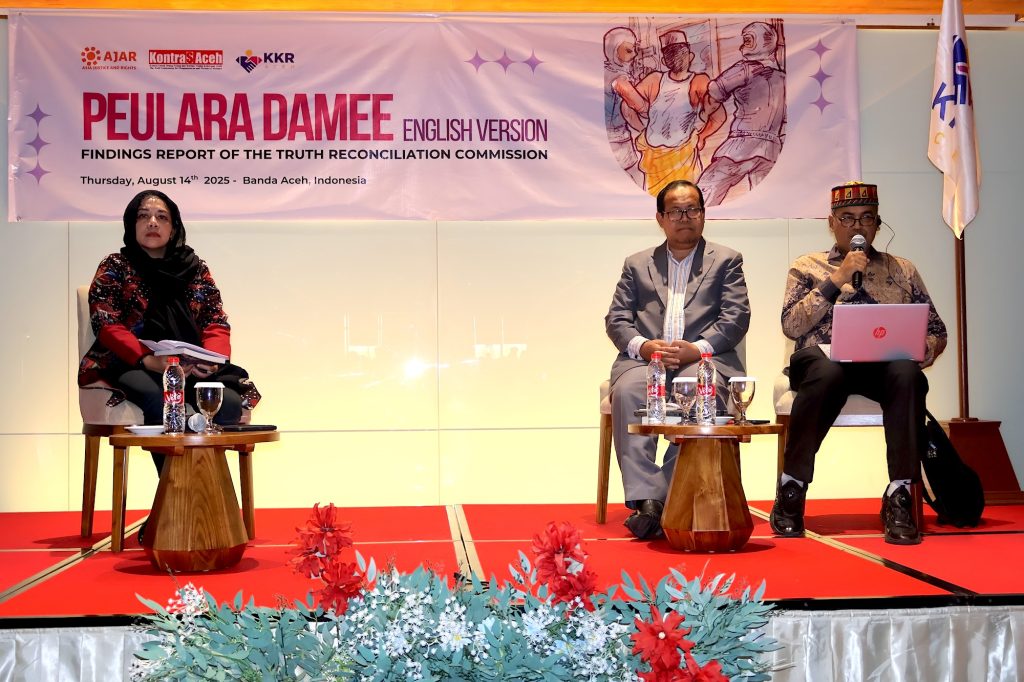A key highlight of the week was the launch of the English version of the Aceh TRC’s report, Peulara Damèe (Nurturing Peace), on August 14. This hybrid event brought together the Aceh TRC Commissioners, representatives from government, civil society organisations, and international guests, including diplomatic communities. The UN Special Rapporteur on Truth, Justice, and Reparation and the UN Special Advisor on the Responsibility to Protect, alongside former TRC commissioners from Thailand, Sri Lanka, the Philippines, and Timor-Leste, participated. Their reflections underscored Aceh’s significance as a rare, domestically generated example of transitional justice in Asia, and its relevance to ongoing global discourse on peace and accountability.